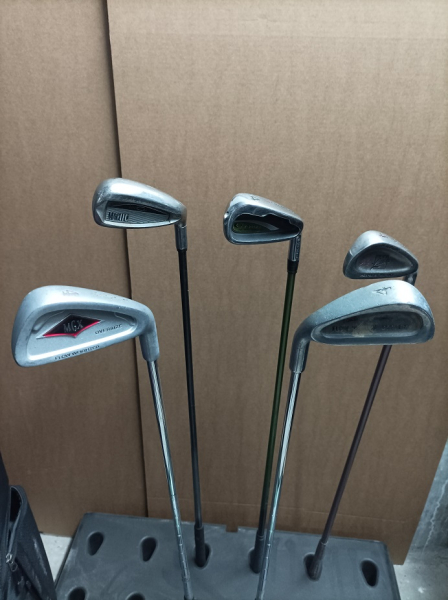 Samostatné hole, jejichž nabídka se stále mění. Obrázek je ilustrativní, ale typ holí je z něj patrný. Většinou jsou k dispozici grafitové i ocelové varianty, občas i hůl pro leváky. Stav ohranosti je různý.